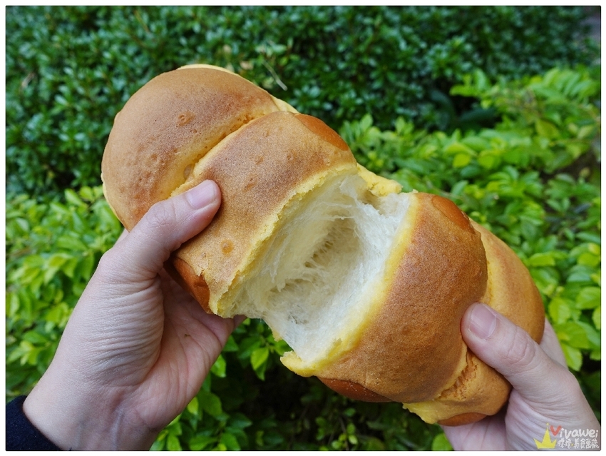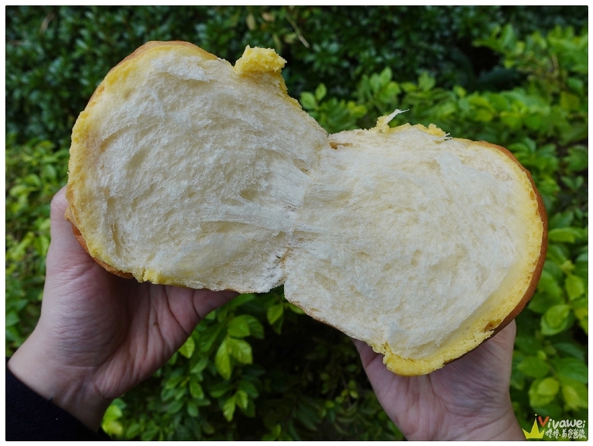 ▲巴布羅的麵包體很鬆軟,用手撕開剝著吃也很好吃,外層黃色那層有點像是奶酥一樣甜甜的~他有一點像吐司~但又比吐司更鬆軟好吃~我自己很喜歡!