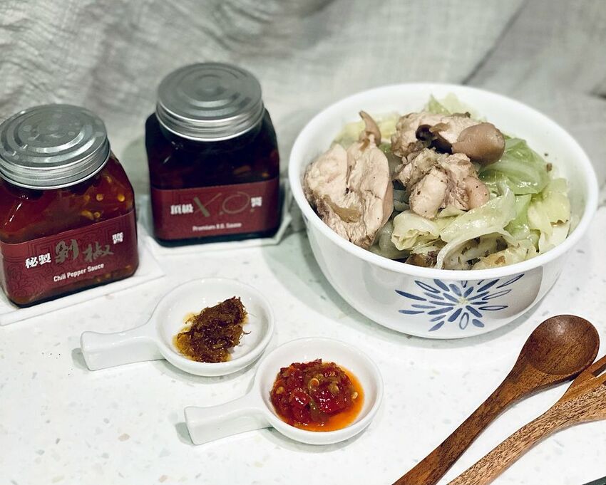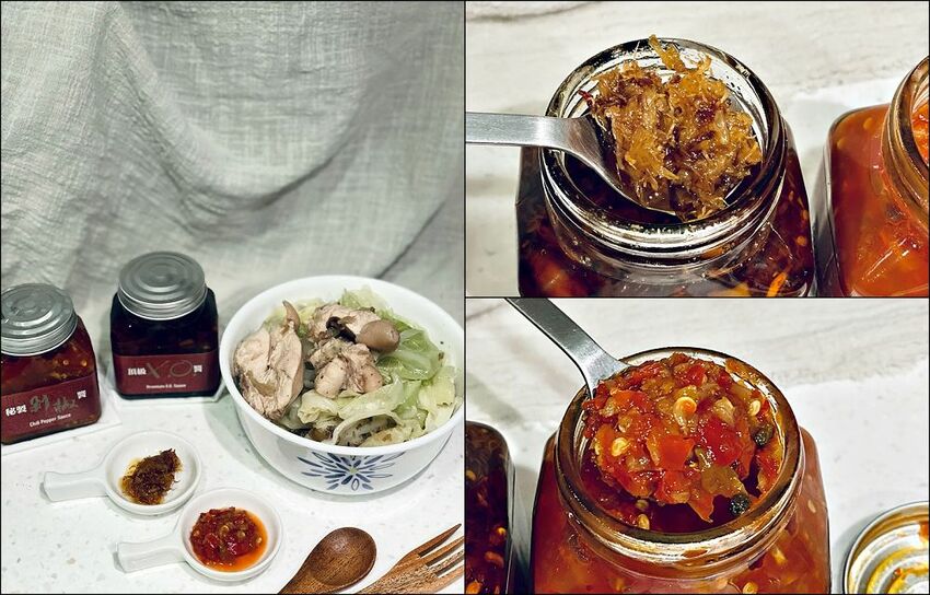 (頂級XO醬),可以看到貨真價實的小魚乾&干貝絲,聞起來油香,實際品嚐起來不會過辣口,用來炒高麗菜 或拌麵 都很可以~