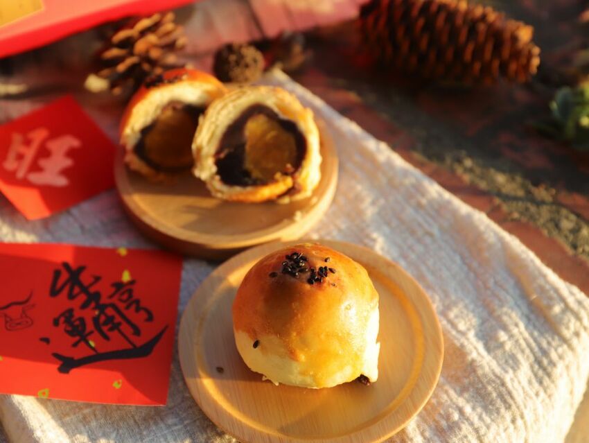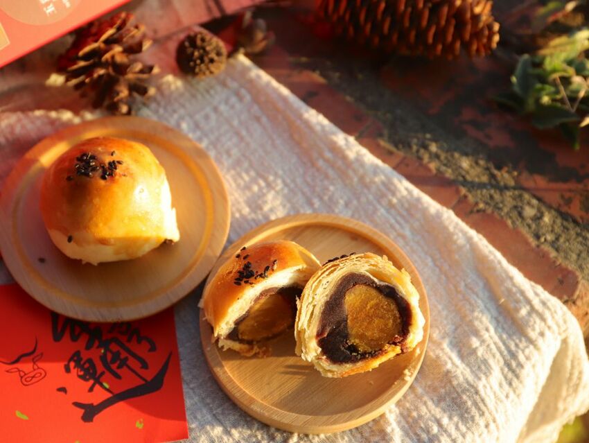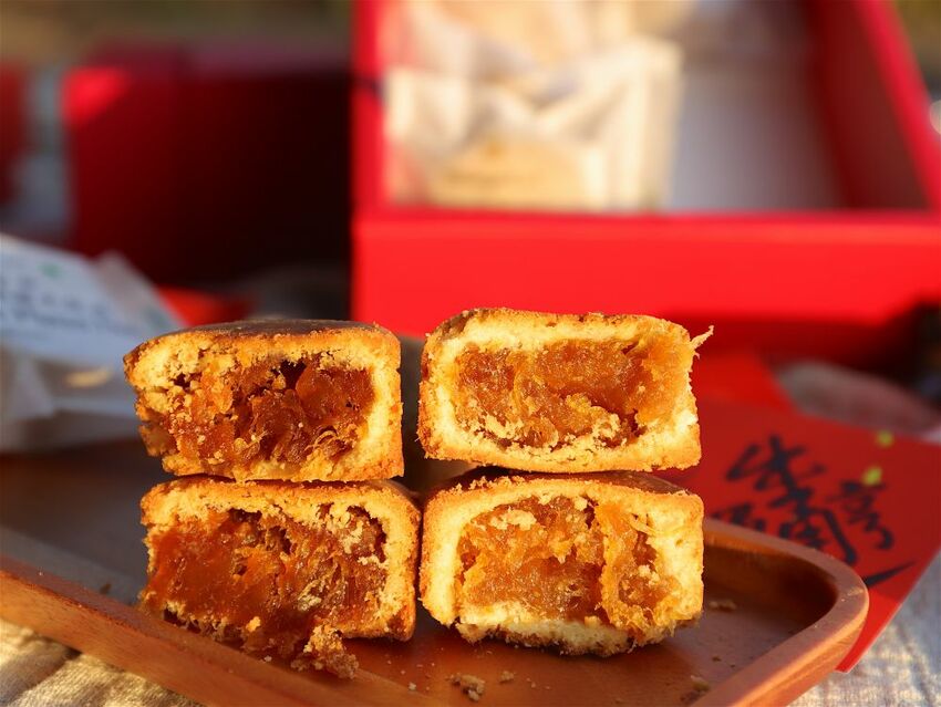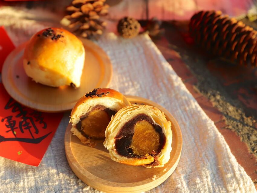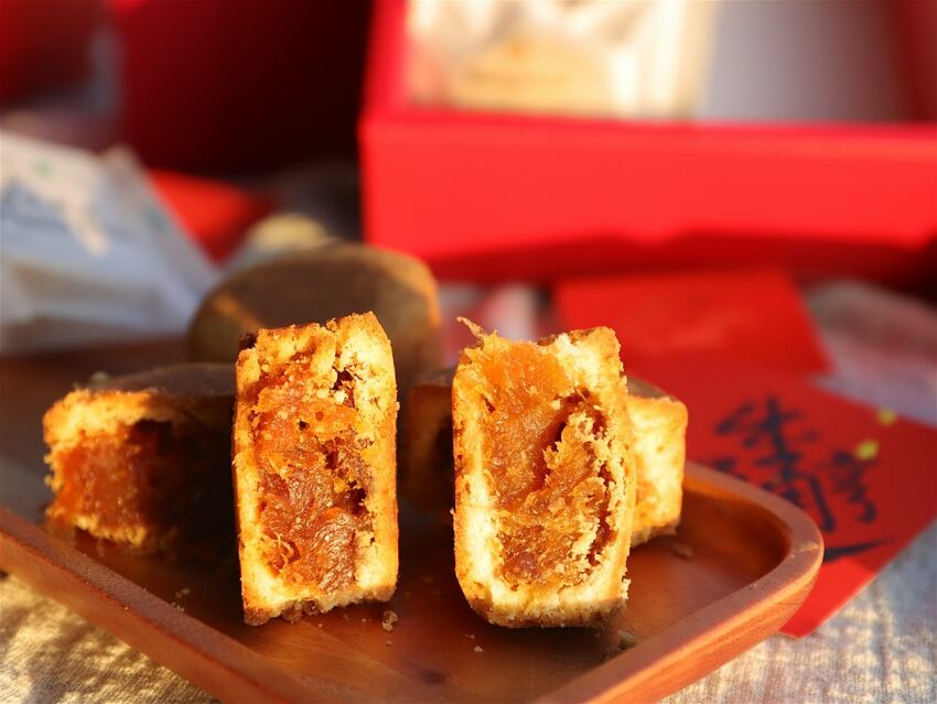 金黃討喜的蛋黃酥,染上了均勻的夕陽般焦色