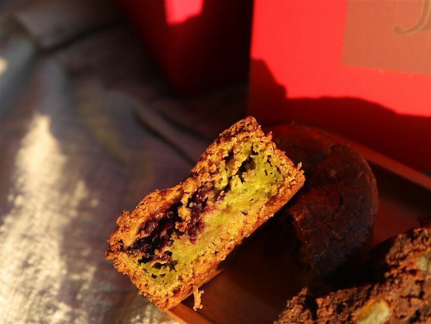 有著濕潤滑順 的口感,獨特的卡士達餡風味搭配,香草滋味 可嘗到 那陌生又熟悉 的開心果味道,搭配的 黑莓(黑醋栗?!) 呈現了 果實的顆粒感 &酸甜滋味,吃起來意外清爽!!! 三款口味同樣也都不甜膩唷!!!