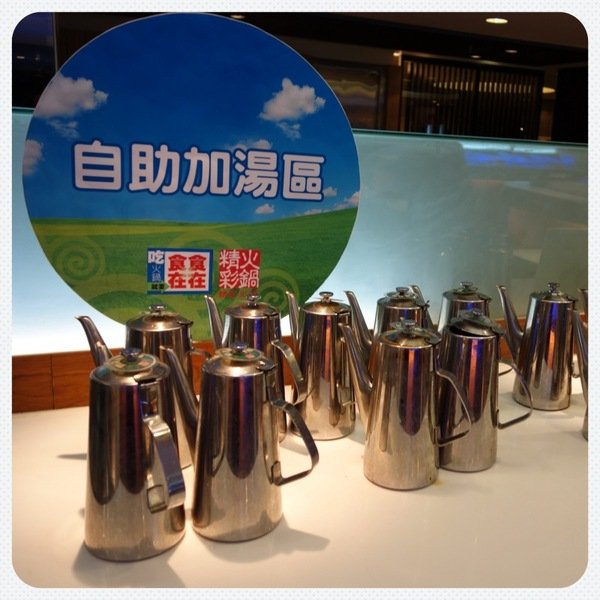 由於是自助式的,所以如果發現湯快煮(喝)完了,可以到自助加湯區拿取自己的湯底回桌加湯,每一壺上面都有標示湯底的名稱,所以也不用怕拿錯湯底,當然也有人喜歡混搭,加上不同的湯底>>>那就...個人喜好啦XDD