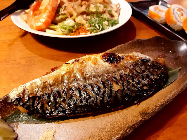 鹽烤鯖魚,烤的恰到好處,不是乾巴巴的,而是富含魚油,這道我也愛。