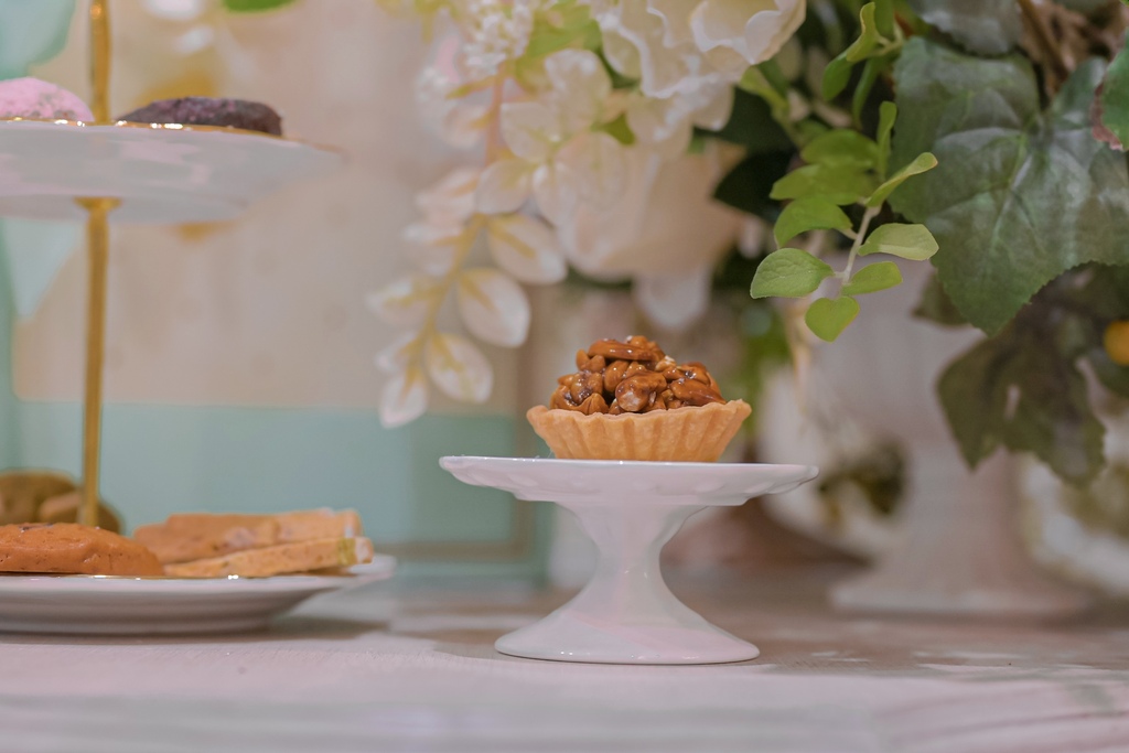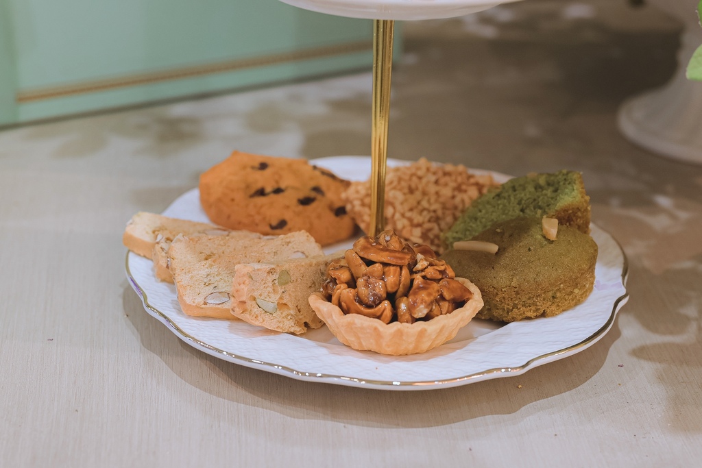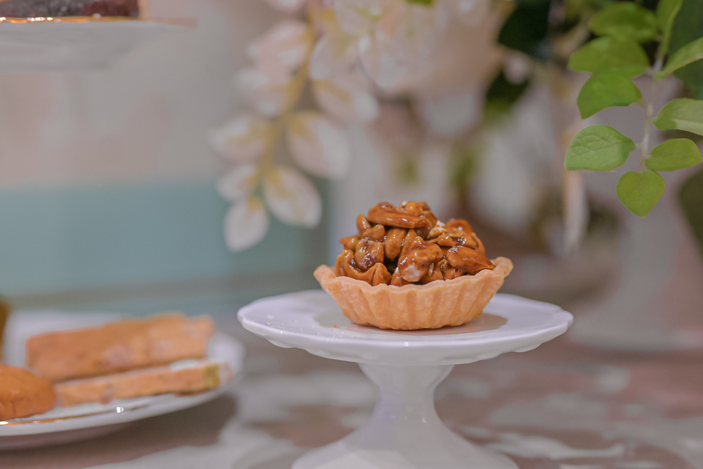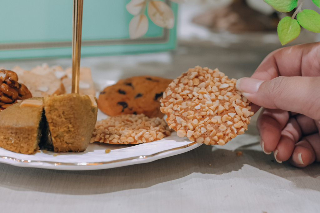 在品嚐完前九款喜餅,來到最後的重頭戲,是口味最甜也最有口感的一款小點心,酥鬆脆口的塔皮上有滿滿的腰果,圍繞著黑糖香,每咬一口濃厚的腰果漫延在嘴裡,甜甜的黑糖在舌尖化開,好酥鬆,堪稱壓箱寶也不為過。