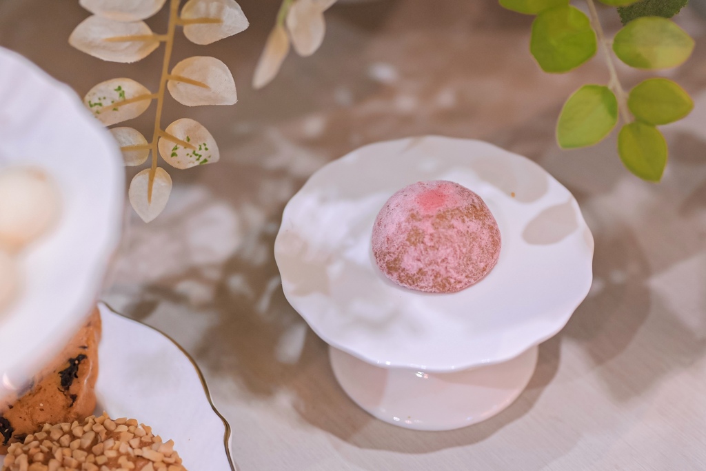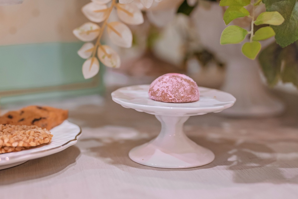 如雪球般可愛,外層是覆盆子粉末,口感非常細緻,入口酥鬆,酸酸甜甜命中少女的心,是很討人喜歡的。