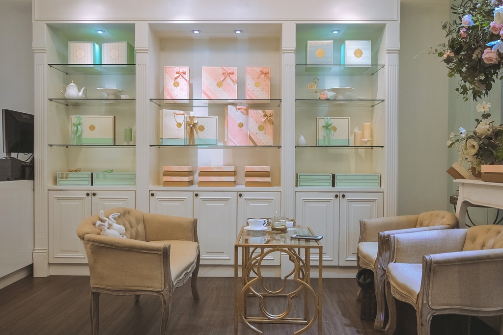 以往都是在家開箱彌月蛋糕及彌月禮盒,直擊印象Tiffany湖水綠色特別深刻,這次來到位在台中新市政公園附近,店面湖水綠的色彩承襲禮盒一致風格,柔和甜香的溫暖色看起來很歐風。