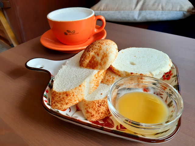 每到一家咖啡館我就必點的熱拿鐵,可惜,時間厝的熱拿鐵,稍稍偏苦一些,不是我喜愛的。但咖啡味滿香的。