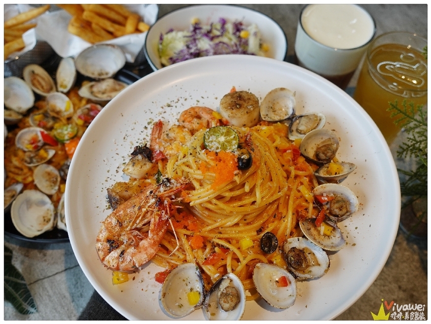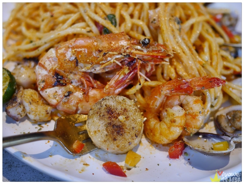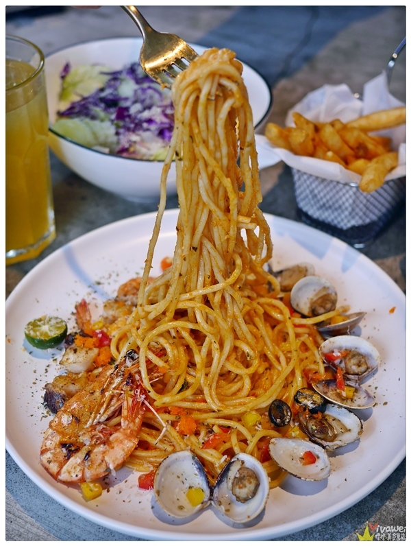 ▲海鮮太太我們選的是義式麵,醬汁是白醬+紅醬的橘醬,但他們的醬汁收的比較乾,我自己私心喜歡濕一點的義大利麵!不過這義大利麵很入味~搭配接受度高的海鮮配料~是很多客人愛點的基本款口味~