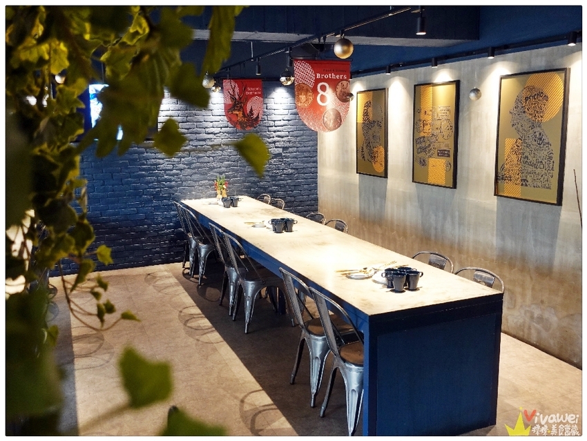 ▲店內用了綠色的植栽點綴,每個角落都很好拍!藍色的牆面配上了白色的桌子和灰色的椅子,營造出工業風的Style!