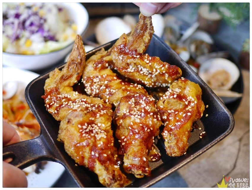 ▲炸雞肉外層的炸衣薄脆~肉質很Juicy!外層甜甜辣辣的醬料吃起來很ㄙㄨㄚˋ嘴~還灑上了白芝麻提味~口感更添層次!炸雞們一份有六支~份量很足~愛吃炸雞的朋友們一定不能錯過👍