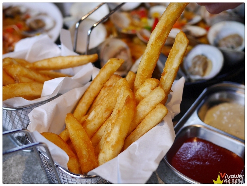 ▲套餐附贈的薯條很有誠意,滿滿一籃的薯條酥脆不油膩!最猛的是他們的醬料,除了番茄醬以外,另外一個帶有蒜味的凱薩醬讓我們超驚艷!濃郁的蒜香凱薩醬跟薯條超MATCH!很值得一吃!