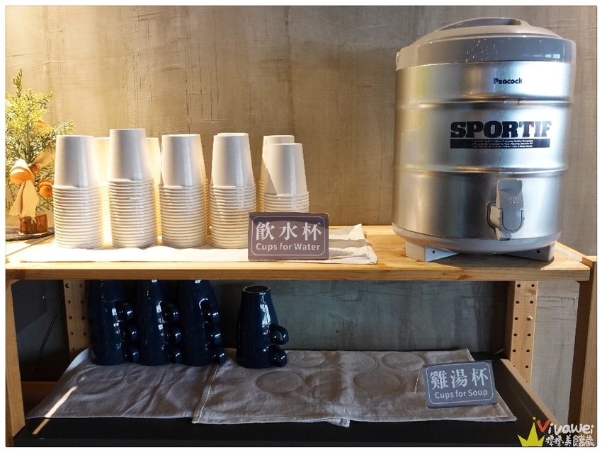 ▲自助區提供了開水和雞湯杯供客人自行取用~