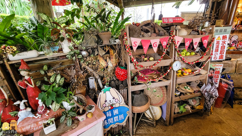 莓圃休閒農場大概是白石湖周邊果園裝潢最美的一間,也因此吸引超多的人潮!不論哪個角落拍照都美到不行,從門口就是大量的植栽可以拍,每年更是有不同主題的蔬菜水果可以體驗採果DIY