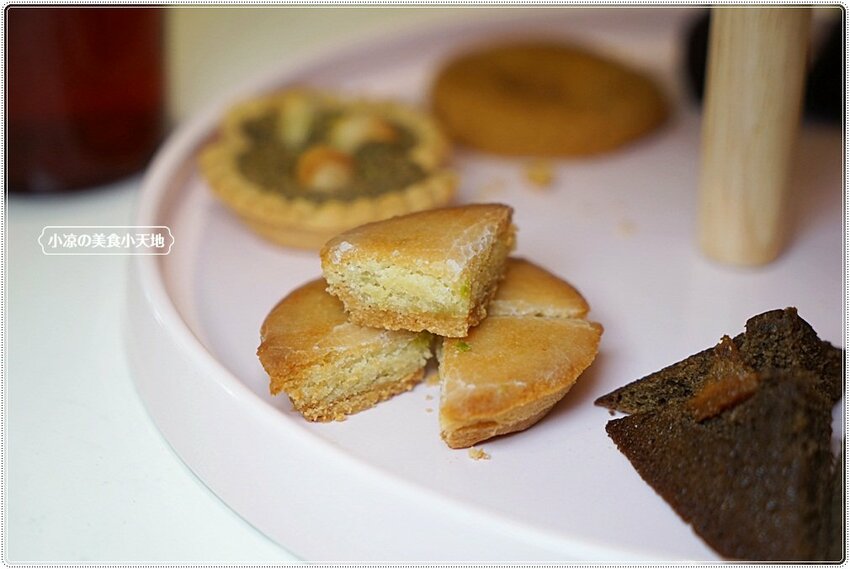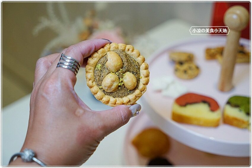 紅茶夏威夷豆塔,將伯爵紅茶茶葉揉入塔皮中,所以在吃的當下會發現茶香味明顯,內餡中除了伯爵紅茶以外上層還有酥脆的夏威夷豆,讓口感豐富又多層次,這一款不單是禮盒內的人氣首選,也是平常顧客會單選購買的人氣甜點唷!