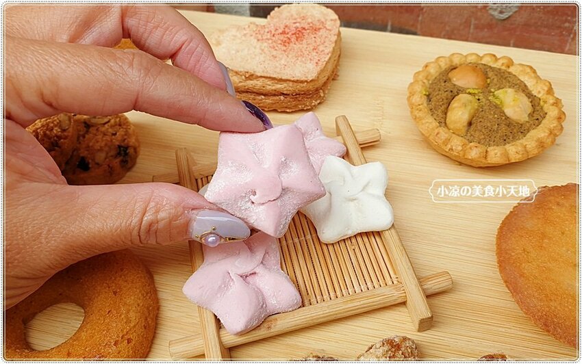覆盆子棉花糖,採用覆盆子果泥讓棉花糖呈現自然的粉紅色,入嘴的果香Q彈,跟市面上的棉花糖差異很大,不單造型獨特又好吃!