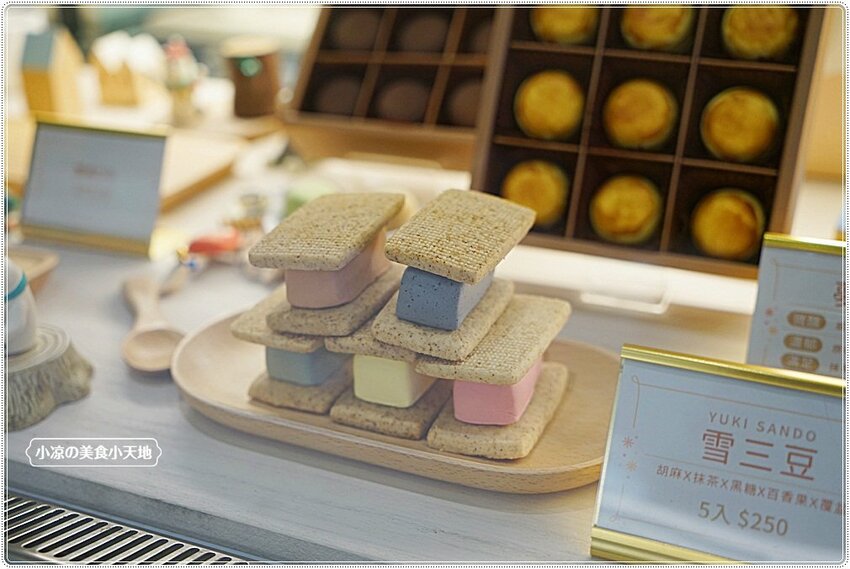 再來就要介紹專屬小涼客製化禮盒,現場選擇自己喜歡的禮盒以及提袋,內容物只要是架上的燒菓子、蛋糕都可以放入,經由店員幫我算了一下,小涼這款禮盒價格是$515,9入。帶點燙金面的LOGO以及討喜的色澤,是我要送給好友們的心意!