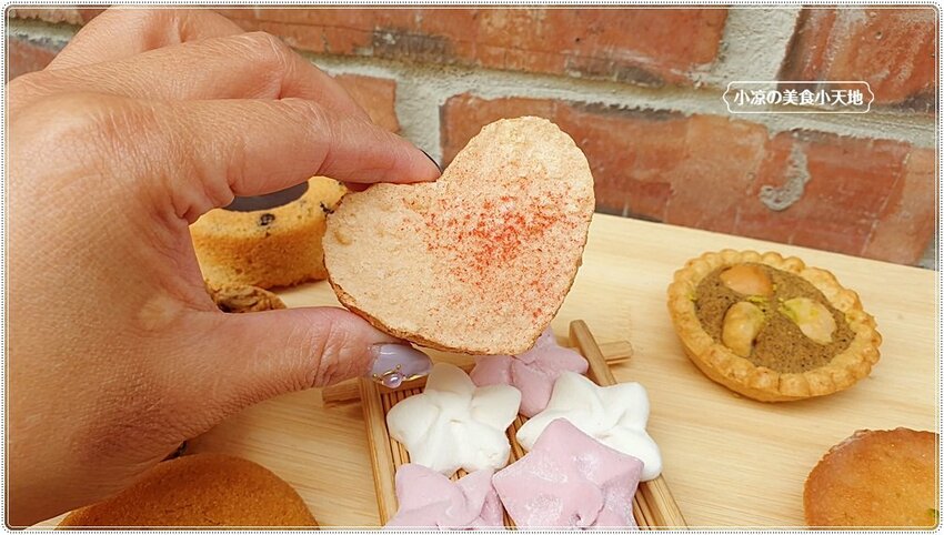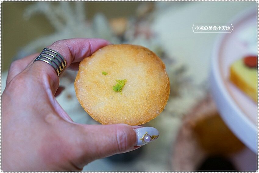 七味粉融入帕馬森起司,吃起來的味道有點偏像蛋黃味,整體的風味就是鹹香鹹香的涮嘴,很不一樣的法式燒菓子!