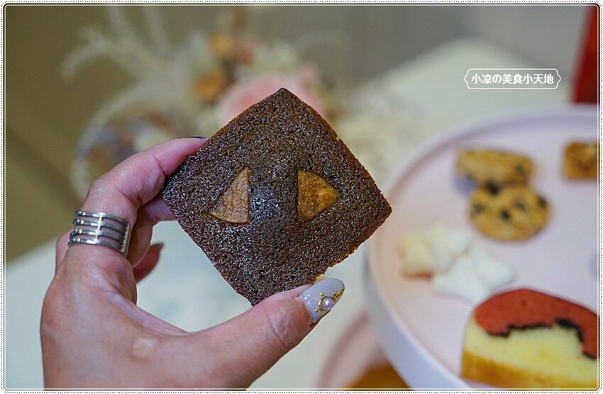 整體吃起來的口感介於蛋糕跟餅乾中間,一開始以為表層的糖霜會很甜膩,但在入嘴後與鬆軟的內餡、以及酥脆塔皮結合,細細咀嚼還能吃到內餡的蜜漬柚子絲以及檸檬絲帶來的清香氣味,讓人好愛!!