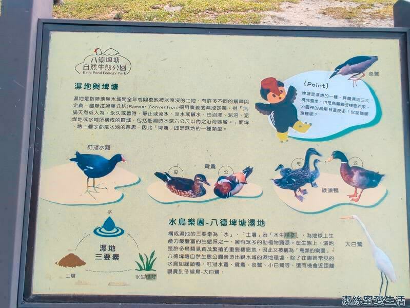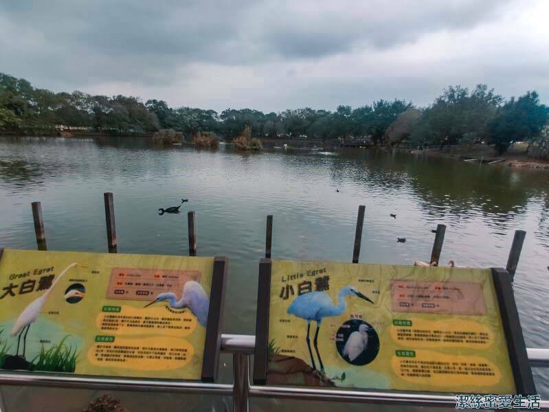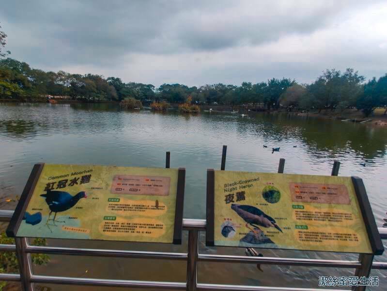 池邊欄杆上有鳥類介紹,讓大小朋友都能認識駐足在這裡的鳥兒們。