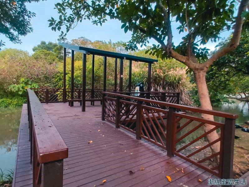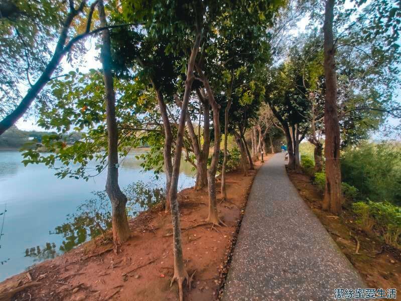 不知不覺已經快繞一圈啦,最後的環池步道雖然路面不大,但兩旁都是樹木,走起來相當服舒,邊散步邊欣賞埤塘風光,真的是很棒。