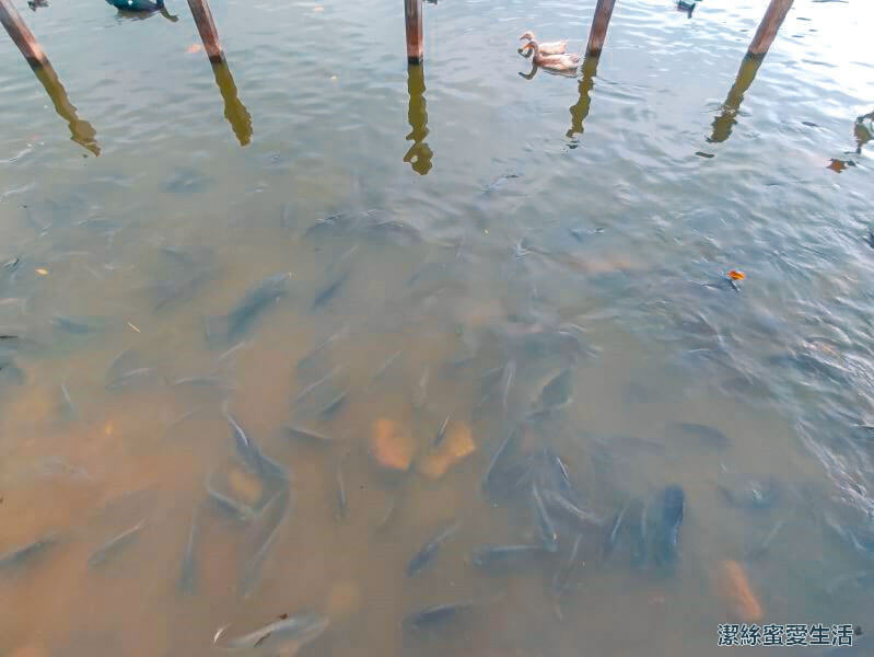 水裡魚超多,而且每隻都很大,似乎是被餵得很飽XD。