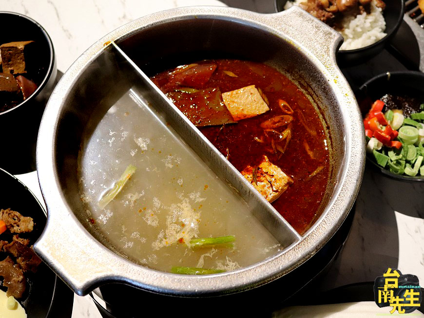 火鍋都是鴛鴦鍋,我選了風暴麻辣鍋x老母雞湯鍋,麻辣鍋以祖傳秘方熬製多時而成,香辣帶勁;老母雞湯頭喝起來香醇濃郁,入口回甘