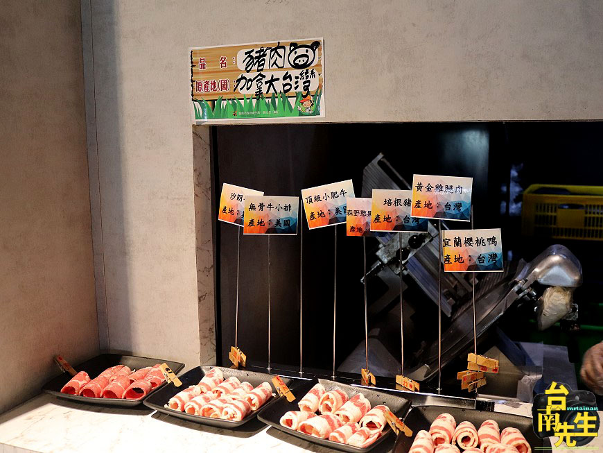 7 種肉品採點餐後現切,產地都有清楚標示。其中「森野憨豬」是以生機飲食概念飼養,在飼料中加入了香草、牧草、綠藻、益生菌,讓肉質較為鮮嫩多汁