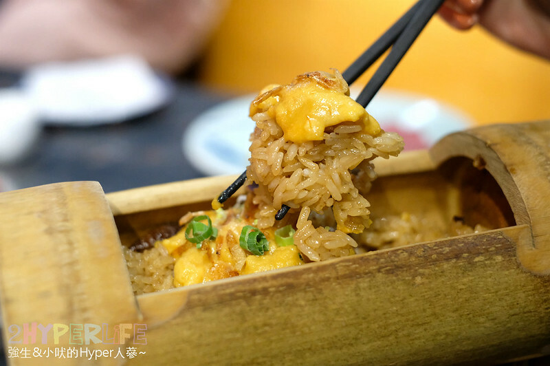 這是加99元升級的竹筒金莎糯米飯(另外也有上海菜飯和打拋豬石鍋飯,三種擇一)