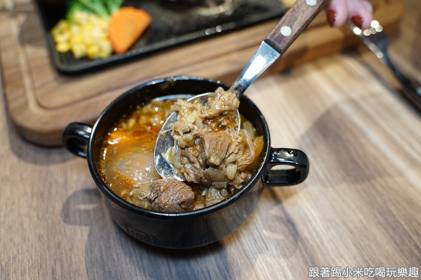 先來說一下,他們的蕃茄羅宋湯蕃茄酸甜的滋味真的很棒,牛肉也是燉得夠嫩,滿滿的牛肉,光喝羅宋湯就覺得很爽啊