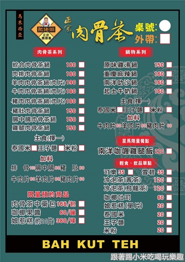 🌟店家資訊: 肥佬田正宗肉骨茶