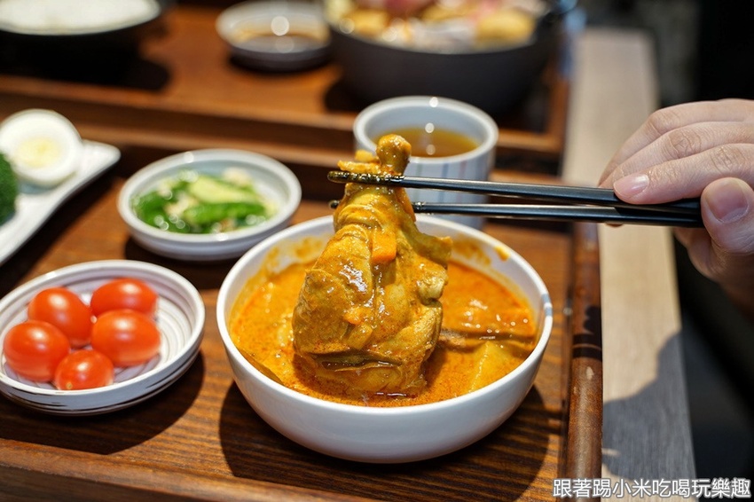 小米很喜歡南洋叻沙鍋的湯頭,薑黃像咖哩的風味,又有蝦鮮味,蝦味不會太濃郁是淡淡的蝦鮮比例調配,是會讓人喜歡的