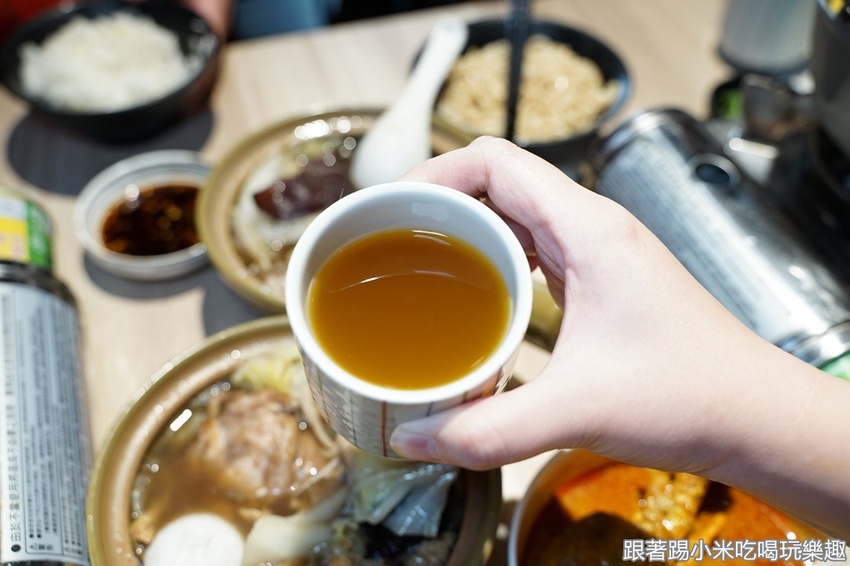 第一次來的朋友推薦可以點綜合肉骨茶鍋(180元)可以吃的到排骨、腸中腸、豬肚,還有豆皮、蔬菜等滿滿的食材,主食的部份有白飯、王子麵及米粉可以選擇,套餐還有附上醬料及綜合果汁,果汁是可以喝到飽的