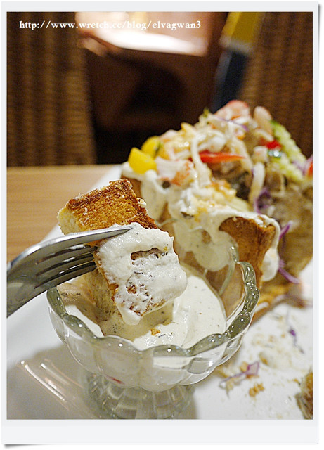 沾一點主廚特製白醬 鹹鹹甜甜的口感更是別有風味