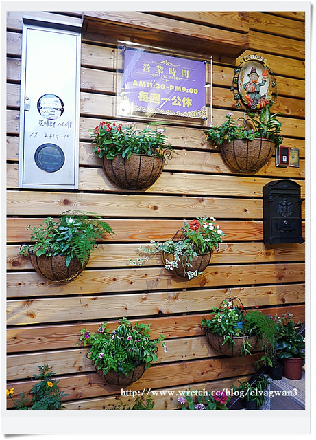 上面釘了好幾盆可愛的盆栽 很有鄉村風的FU