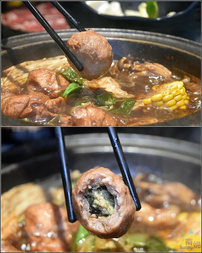 Q彈又帶有脆度的貢丸口感很棒,裡頭滿滿的三星蔥豬肉內餡,味道鮮香又多汁,推薦必點。
