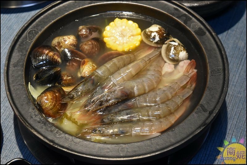 白蝦 也很新鮮,肉質Q彈味道很甜,煮完蝦子後湯頭都是蝦膏的海味。建議先煮蛤蜊跟蔬菜,鮮蝦留到最後再煮,不然湯頭會因為蝦膏溶入湯裡面改變風味。