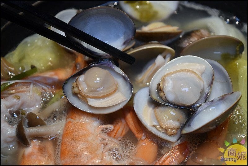 蛤蜊大顆肉質飽滿很新鮮,在四川風味的藤椒酸菜湯底涮煮,味道更鮮更好吃。