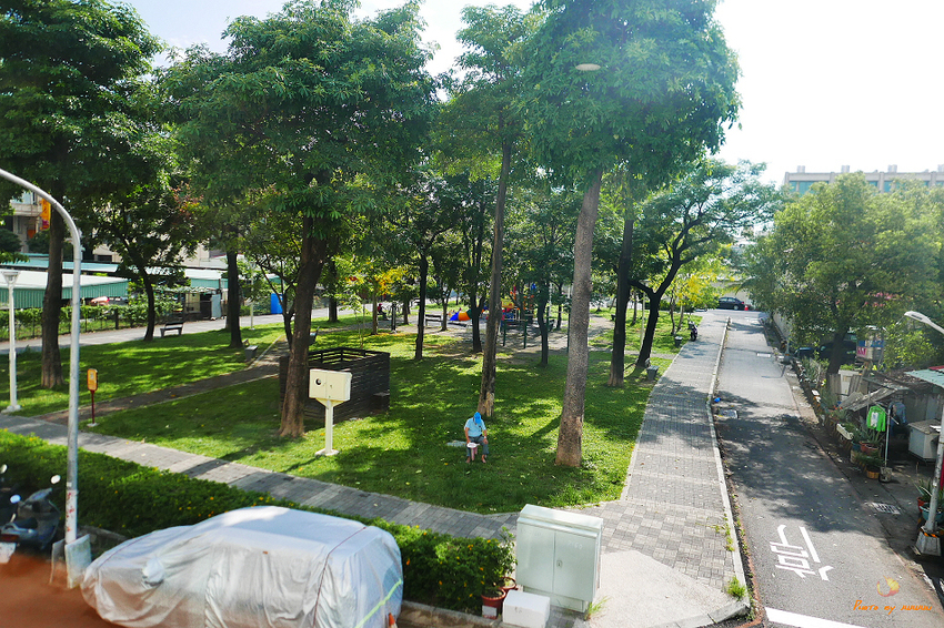 睜眼一看原來是躲在公園滿目綠意的後方啊!!
