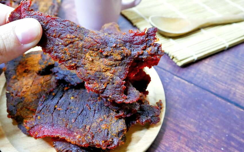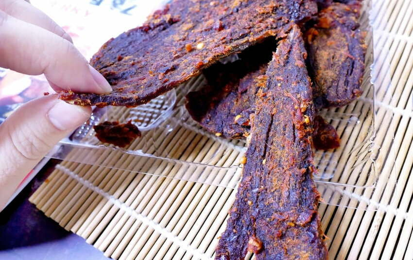 撕牛肉乾同時.可以感受到肉汁附著在手指上.非常濕潤多汁