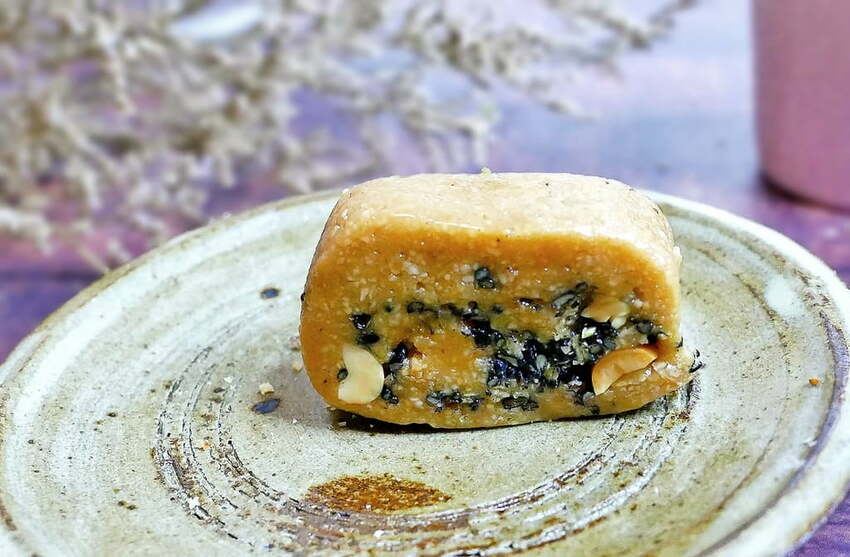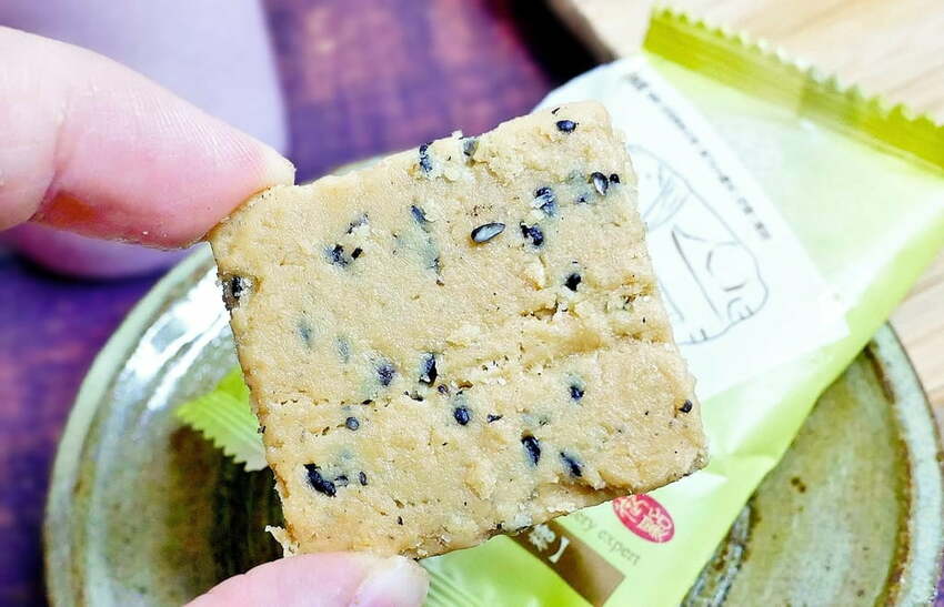 外層的手工敲打的花生酥,加入黑芝麻,帶有薑汁風味.一整個香氣十足~