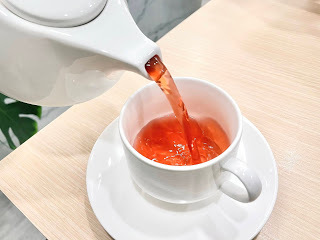 飲品部分,為了解一點膩口,我們都點風味茶居多,冷飲部分,香柚和鳳梨紅茶都不錯,還有果粒在裡面;熱飲則是點了可回沖的覆盆子草本茶,天氣稍冷的時候就是要喝熱的!吃完主餐待等消化的時間就是喝茶殺時間~