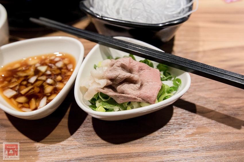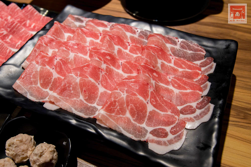 『豪野櫻桃鴨(108元/5盎司)』『台灣黑梅豬(188元/8盎司)』『霜降牛(368元/12盎司)』因為喜歡吃肉又怕太多吃不完,所以點了不同盎司的組合,豪野櫻桃鴨肉質肥厚細嫩,而且豪野都是吃最純粹的食材,所以油脂豐富、肉質細嫩。黑梅豬的是黑豬的一種,產地是台灣,肉質色澤鮮嫩,雖然帶點油花,但瘦肉比較多,雖然久煮不會柴,但個人還是喜歡燙熟就馬上起鍋,這樣的嫩度更棒。因為很喜歡牛肉,所以霜降牛點了prime等級12盎司大份的,油花分布均勻,口感鮮嫩,所以建議涮個幾秒鐘,不要太熟最好吃。
