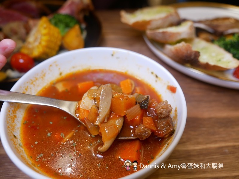 這天喝到的是蕃茄味超濃的羅宋湯,裏頭料真的是放好放滿算是蠻有誠意的,