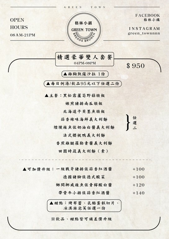 格林小鎮︱MENU菜單。價格