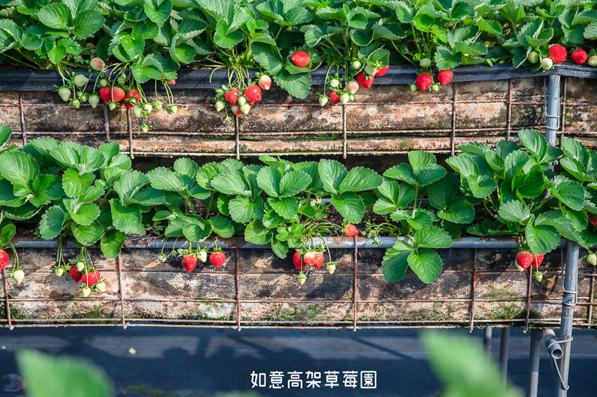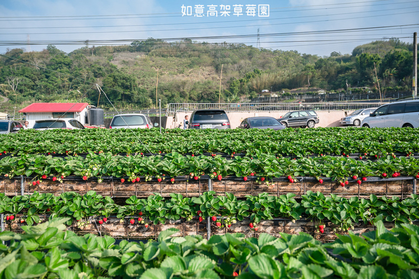 我很喜歡如意高架牛奶草莓園是因為,這裡的景色真的很棒,從高處看過去真的很像高山那種茶園般的景色,而且前面是高架草莓的部分,後面是一般地面的草莓,不得不說這草莓園佔地算滿大的,站在高處放眼望去,完全把整個草莓園的景色盡收眼底啊!