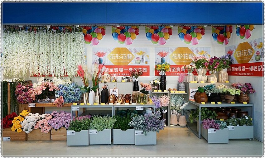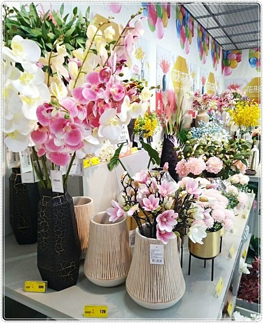 過新年當然少不了除舊佈新的仿真花增添空間清新氛圍,營造出新年氣氛麻!! 在二樓入口處有著不少的仿真花以及各式花瓶、花器供大家選購!!