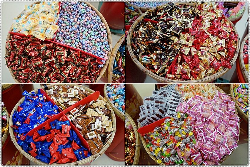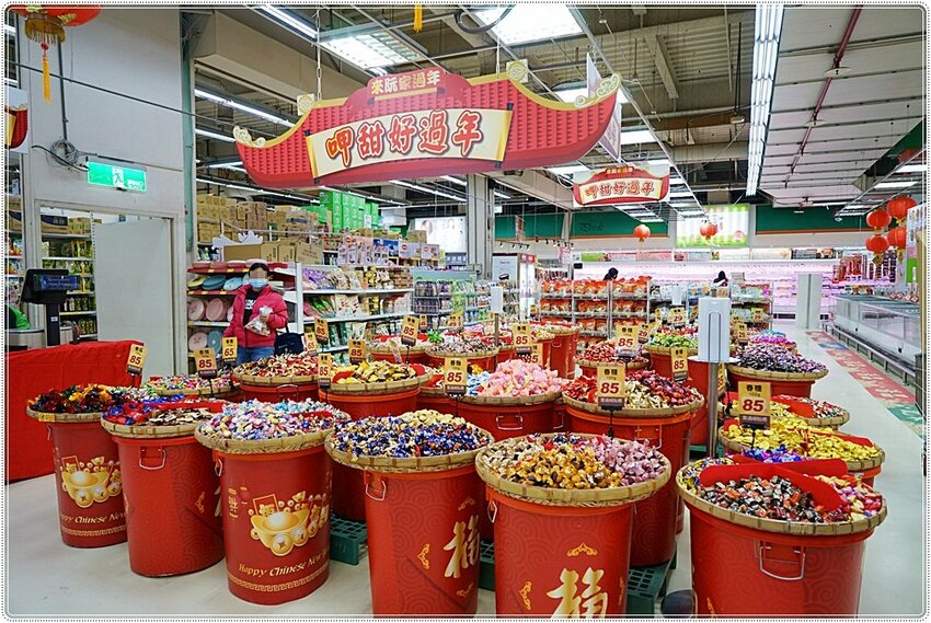 過新年過新年、新年到年年年,過年期間不少親朋好友來訪少不了桌上擺放許多糖果,這一區可是散糖區,精選百種款式任你選,再依照重量來算價格!!