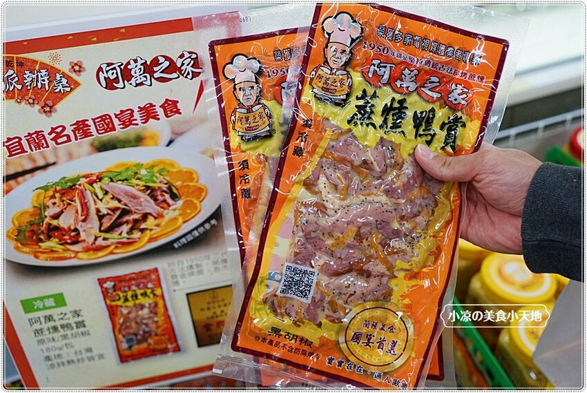 宜蘭傳承三代的阿萬之家蔗燻鴨賞有原味、黑胡椒,回家拆封加入蒜苗一起拌炒,不管是配飯、配酒都很有滋味! 亦可涼拌食用!