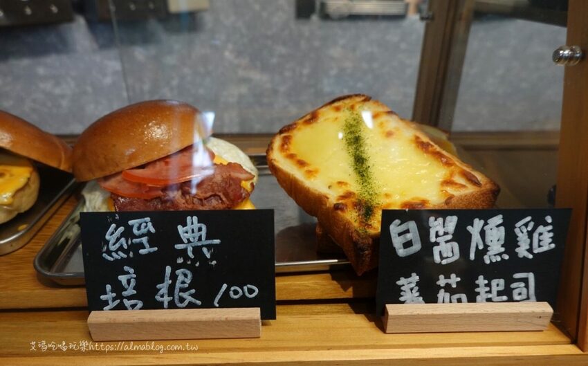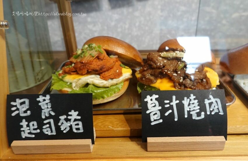 溜還有現做的鹹食貝果,泡菜起司豬、薑汁燒肉和經典培根。
