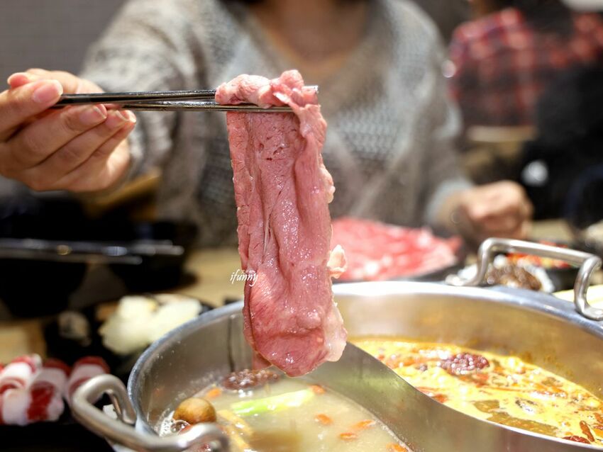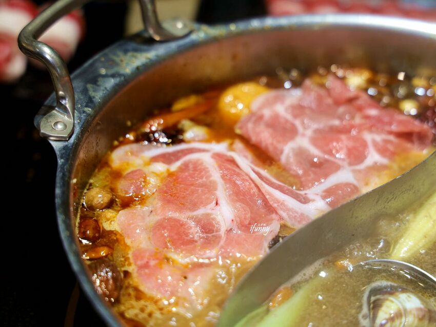 麻辣蒙古鍋的湯汁精華全被這粉嫩的肉片吸附了,溫潤醇厚的滋味帶來味蕾美味的衝擊,真的好好吃喔!