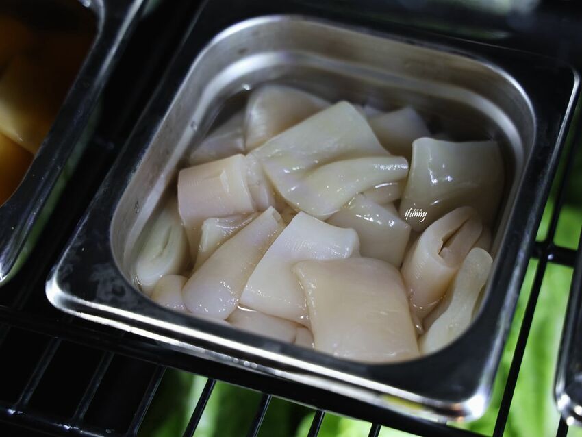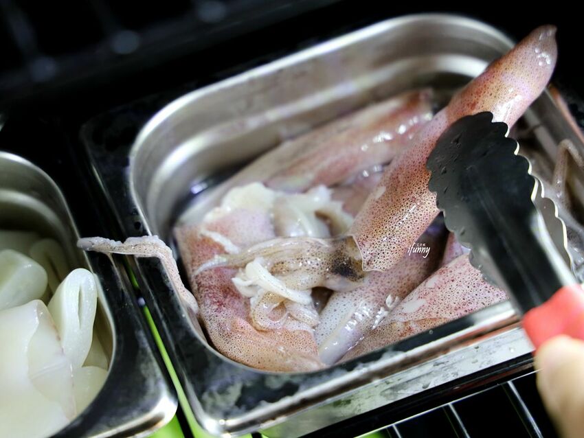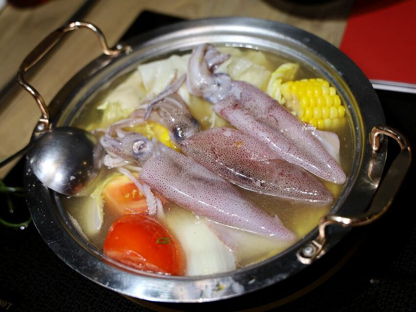 尺寸不小的小卷,幾乎跟鍋子一樣大,在甘蔗鍋涮煮熟透,入口後竟然鮮甜Q彈的好滋味。